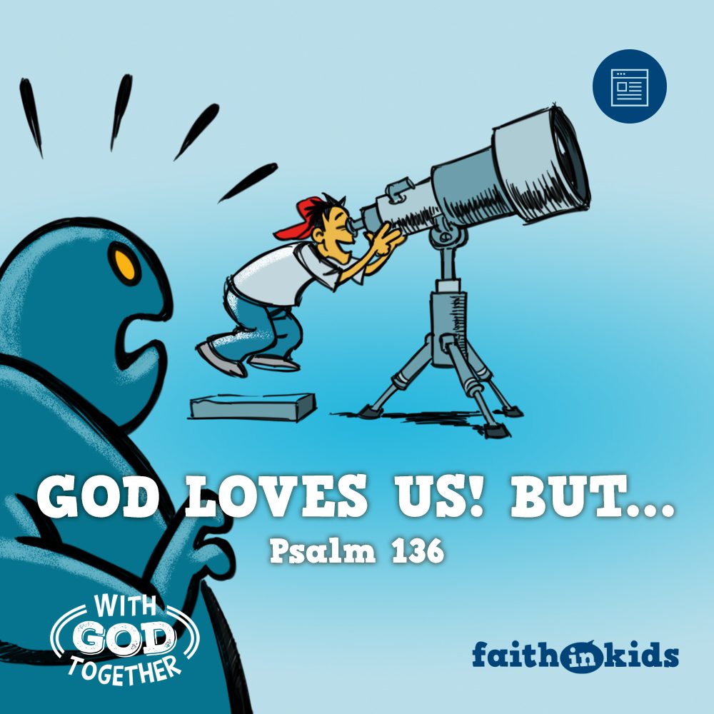 Psalm 136 is a great place to go when our children’s response, to “God loves you!” is “But …” (It’s great for us, when that’s our response, too!) It takes a simple, foundational truth – “God’s love endures forever” – and fleshes it out with physical, solid, tangible evidence. This is a psalm that rubs our noses in the earthy reality of what being loved by God actually looks and feels like.