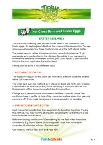 EASTER ASSEMBLY: HOT CROSS BUNS AND EASTER EGGS – This 10 minute assembly uses familiar Easter treats – hot cross buns and Easter eggs – to explain Jesus’ death on the cross and his resurrection. Two eye witnesses will explain how these treats remind us of the truth about Easter.