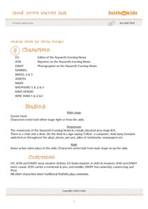 In this nativity we follow the events leading up to that very first Christmas with the reporter of the Nazareth Evening news. But will this incredible story about the birth of “The King of the Jews” make the headlines even without photos?