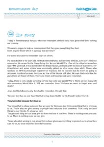 Those who died serving in our armed forces have given up everything to protect us, to show they care for us, to show that they love their country. We must remember them. And we must remember Jesus, who gave his life, because he loved us, to give us the freedom to be in God’s family, forever.