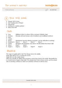 We follow how the donkey, the cow, the sheep and the camel finally realise that Mary and Joseph really have been chosen to raise the son of God, the shepherds were told that this Baby is the Christ; the promised one sent by God to rescue. The Wise men have found the King who will reign forever. Jesus has been born to save his people.