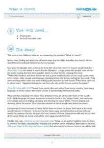 What is Church for? What is Church like? A series of 7 short talks explaining that the Church is for: listening to God and talking to Him, for encouraging one another, that it is a body, a bride, and branches of a vine, and that Church is forever.