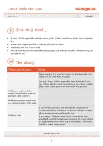 This assembly helps children work out who Jesus is through one of his miracles. It also explains that Jesus was kind to feed all those people, exactly the same way as God is kind to us. And that we should always thank people who give us food.