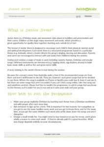 Junior Jivers is a Christian music and movement class aimed at toddlers and preschoolers and their carers.